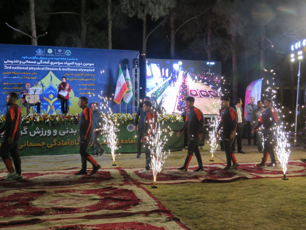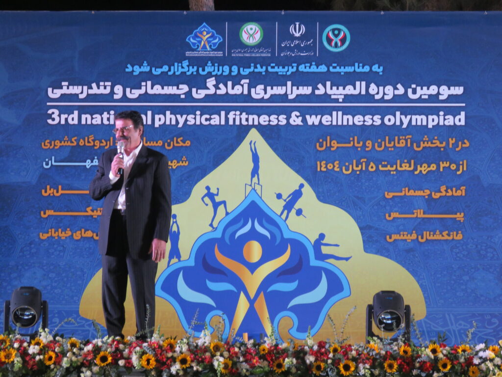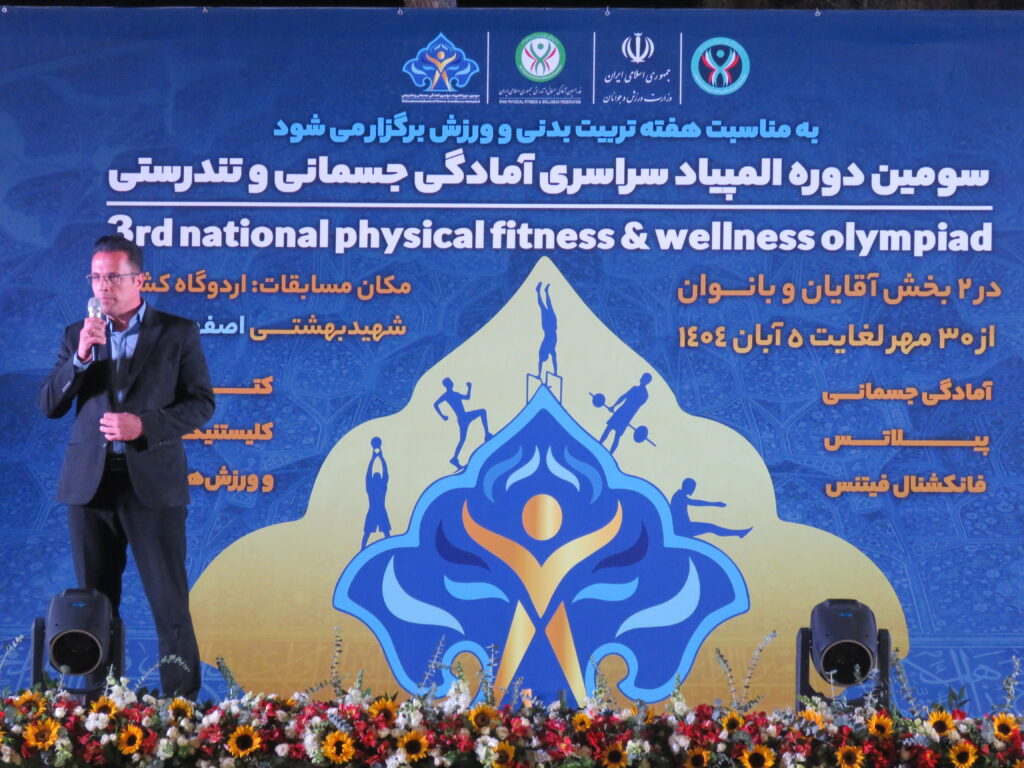 آیین افتتاحیه سومین دوره المپیاد سراسری آمادگی جسمانی و تندرستی با حضور استاندار اصفهان، رئیس فدراسیون آمادگی جسمانی کشور، فرماندار شهرهای فلاورجان و خمینی شهر، مدیرکل ورزش و جوانان استان و جمعی از رؤسای هیأت های ورزشی، ادارات و ارگان های مرتبط، همزمان با هفته تربیت بدنی و ورزش روز چهارشنبه 30 مهرماه 1404 در کمپ شهید خرازی اردوگاه کشوری شهید بهشتی اصفهان برگزار گردید. لازم به ذکر است در این دوره از مسابقات بیش از 600 نفر ورزشکار آقا و 500 نفر ورزشکار خانم در 6 رشته ورزشی از 30 مهر لغایت 5 آبان ماه در اماکن مختلف اردوگاه از جمله سالن ورزشی پوریای ولی، زمین چمن مصنوعی، زمین چمن طبیعی و زمین های ورزشی آسفالت به رقابت می پردازند.